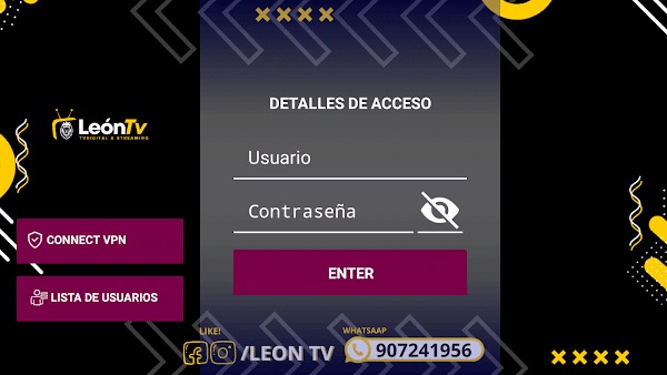 En cuanto al funcionamiento general, LEON TV se conecta a internet, verifica las credenciales del cliente y carga la lista de canales en vivo junto con el contenido bajo demanda. Desde la pantalla principal se puede entrar a secciones de TV en directo, películas, series y, en algunos casos, grabaciones o contenido reciente. Todo se muestra en español, con una interfaz pensada para que sea rápido moverse entre categorías y títulos.